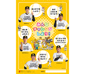 福岡ソフトバンクホークスでは、2015年度より青少年アンビシャス運動に賛同し、ホークスオリジナル文具の提供を行っています。