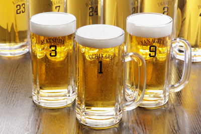 生ビール中ジョッキをご注文のお客様には、選手背番号入のグラスにて提供させていただきます。全10選手、どの選手のグラスで出てくるかお楽しみに♪