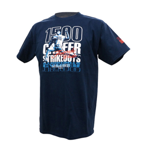 ネイビーカラーボディに和田投手の投球シーンをグラフィカルにデザインした記念Tシャツです。袖にも1500奪三振を表す「1500CAREER STRIKE OUTS.」がプリントされたスタイリッシュなTシャツです。