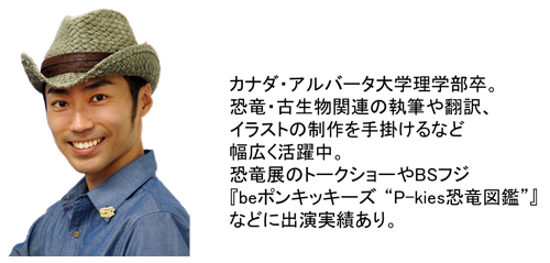 研究だけでなく、イラストレーターとしても、様々な恐竜イベントやグッズのデザインを手がけている、「恐竜くん」のイラスト・解説による恐竜図鑑パネルの展示も行います。