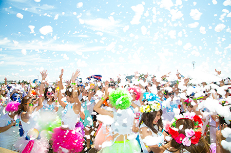 海上のバブルマシーンからの大量の泡が噴射されると、フォトジェニックすぎる巨大なあわあわスポットが出現!今年のバブルランテーマは「LIKE♡HAWAII」!ハワイをモチーフにした様々なコンテンツが登場し、ハワイに遊びに行った気分を演出します!「泡まみれ」になって楽しく遊べるのはもちろん、インスタ映え必至サーフィンフォトスポットなど、楽しさ満点のイベントを楽しんくださいね。