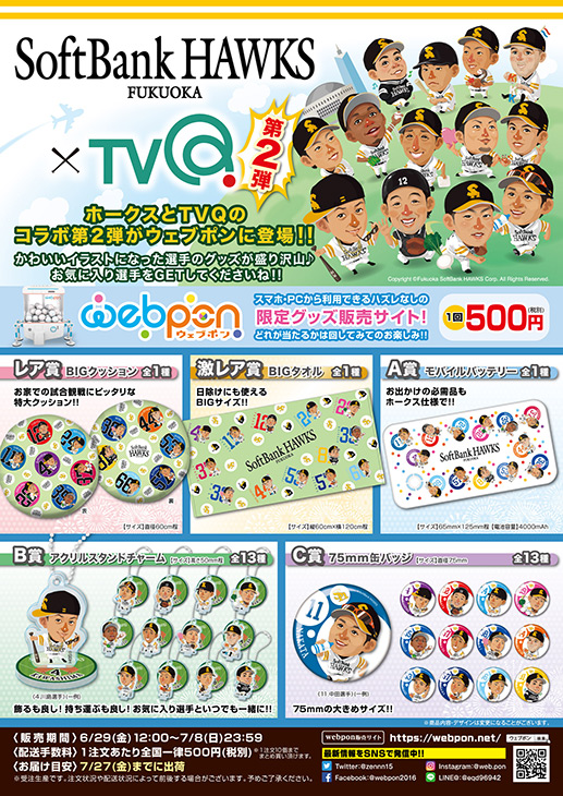 限定グッズ販売サイト『ウェブポン』から【ホークス×TVQ第2弾】が販売開始!