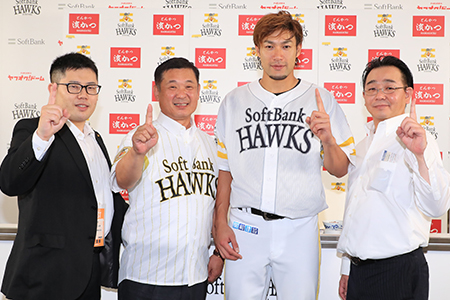 6月30日(土)、ヤフオクドーム内のプレスカンファレンスルームにて発表会見が行われ、ホークスからチームを代表して柳田悠岐選手が出席しました。