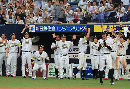 もちろん、グラウンドでは本拠地ヤフオクドームと同様に球団マスコット「ハリー」や球団オフィシャルダンスチーム「ハニーズ」、体操兄さん「トッシー」、DJの「ツバサ」らが場内を盛り上げ、ホークスの故郷である大阪が本拠地として復活したような1日となりました。