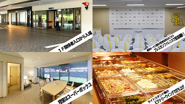 朝は関係者入口から入場し、控室はスーパーボックス、走る前のチーム記念撮影は普段選手が会見するプレスカンファレンスルームを使用、レース後は普段選手が使用するお風呂で汗を流し、打ち上げはライトスタンド奥のビクトリーウイング・・・1チーム分の参加料+ヤフオクドームの施設を贅沢につかった『満喫プラン』をご用意しました。
