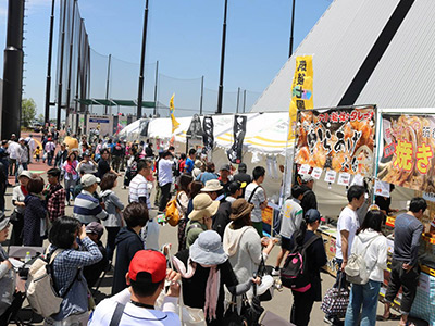 ※9月22日(土)が試合中止になった場合、振替日に「おもてなしテント」の出展は、「ハッピーマンマブース」と「ハンドマッサージ」ブースのみとなります。