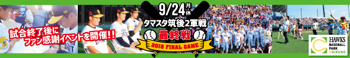 今シーズンのタマスタ筑後もいよいよ9月24日(月・休)がウエスタン・リーグ公式戦最終戦!最後まで若鷹に熱い声援をよろしくお願いします!