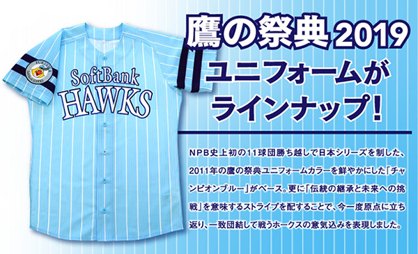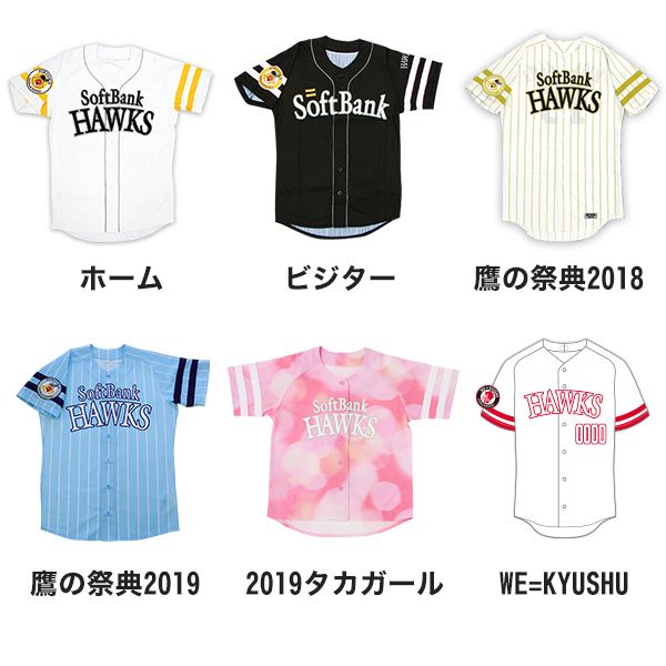 2019年度のユニフォームは、「WE=KYUSHU ユニフォーム」をはじめ、本日デザイン発表されたばかりの「鷹の祭典2019ユニフォーム」がラインナップ!