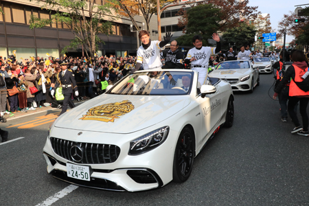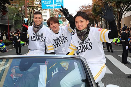 11月25日(日)、球団史上2度目となる2年連続日本一の祝賀パレードが、福岡市内中心部の明治通りにて行われました。