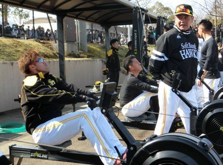工藤公康監督が予告していた通り、第2クールまではランニングメニューがかなり多く組まれています。午前中はボールに触ることなく、とにかく走る、走るを繰り返します。初日は600メートル×3本、150メートル×10本、10m往復切り替えしを数本が組まれ、冷たい風が吹く中でしたが、選手たちはみんな汗だくになっていました。また、最新トレーニングマシンも導入。工藤監督は「きちんと使えば全身のあらゆる所が鍛えらえれる」と効果を口にしました。また、走る意図についても「心肺機能をまずは上げていく」と1年間戦い抜く体、怪我をしにくい体の基礎を作るためだと話しました。