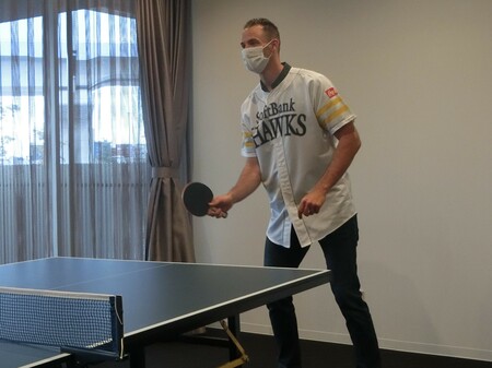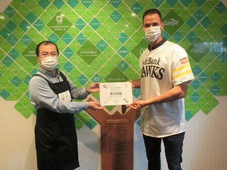 「ドナルド・マクドナルド・ハウス ふくおか」にはバンデンハーク投手より 821,208 円を寄付。加えて、ご家族やスタッフが少しでもリラックスできるようにとレクレーション用に卓球台も寄贈しました。訪問当日は、寄付の贈呈式のほか、実際にハウスに滞在しているご家族ならびにハウス運営をサポートしているボランティアの方々との交流も行いました。