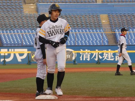 長打は打てたけど、詰まっていたのでちょっと悔しいです。緊張はあまりしませんでした。普段緊張しないタイプ。今日は絶対に勝つと思って試合に臨みました。ジュニアに選ばれて、ホークスのユニフォームを着て九州の代表として戦えたのがよかった。