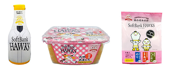 今年で創業100周年を迎えたマルヱ醤油から「ホークス応援パッケージ」の商品3品を発売中!商品3品とも「九州の味」に仕上げました♪オンラインショップからも購入いただけます。