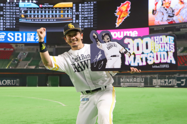 HAWKS STOREかHAWKS公式オンライストアで、「松田選手通算300本塁打達成記念グッズ」を含む、税込1万円以上の商品ご購入のお客様の中から抽選で1名様に、記録達成時に松田選手が掲げた直筆サイン入りの「記録達成パネル」が当たるキャンペーンを実施します!