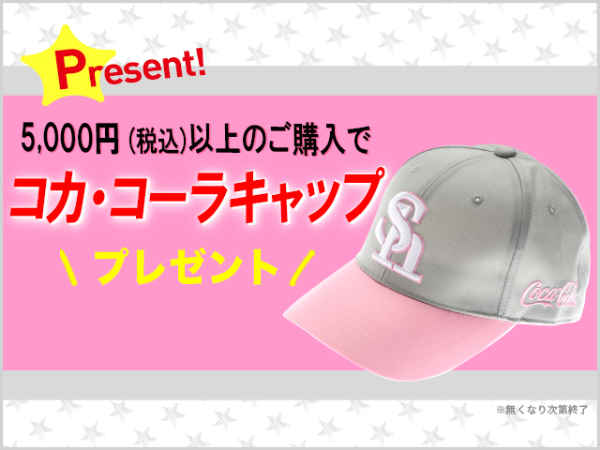 | 概要 | 税込5,000円以上(商品代金のみ)ご購入いただいたお客様にコカ・コーラキャップをプレゼント |