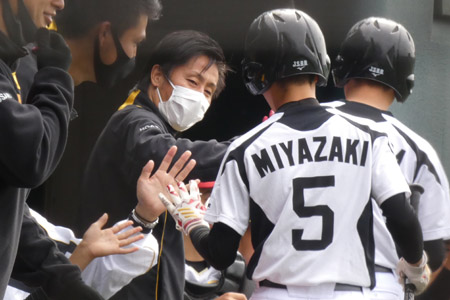 また、前週には関西遠征してタイガース、バファローズ、カープの各Jr.チームと練習試合を行いました。結果は2勝2敗。ただ、なによりも「一緒に泊りがけで遠征していろんな経験もしたことで、さらにコミュニケーションが図れたことでチームがより1つになったと思います」(帆足監督)というように、試合中の声の量も大きさも当初に比べてかなりの成長を感じさせました。