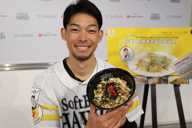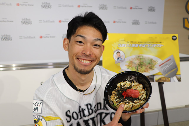 「第2回 うまい!焼きそばコンテスト」にて、総応募数約150件ものレシピの中から、書類審査・実食審査を経て、見事グランプリに輝いた「博多明太子マヨ焼きそば」が、3月25日(金)開幕戦から発売決定!さらに、試食した又吉投手のアイデアでスペシャルトッピングメニューも誕生しました!新感覚のご当地焼きそばをぜひお楽しみください♪