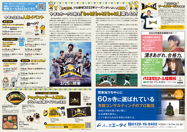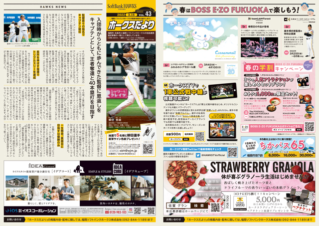 ※一部配布されない地域があります。また、『ホークスだより』の郵送対応は行っておりませんので、あらかじめご了承ください。