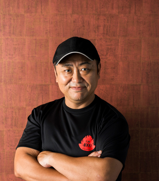 現在 4000 Chinese Restaurant、笄Ji-cube、ファイヤーホール4000 3店舗(五反田、麻布十番、虎ノ門)のオーナーシェフ。
