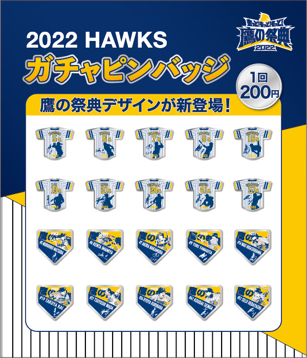 鷹の祭典デザインの「ユニフォーム型」と「ホームベース型」の各10選手展開で新登場!ホームベース型はガチャ限定アイテムです!