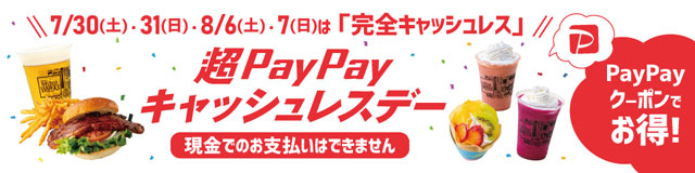 7月30日(土)・31日(日)はドーム内が完全キャッシュレスとなる「超PayPayキャッシュレスデー」を開催!PayPayドーム内での買い物がキャッシュレス決済のみとなります。(ドーム内は現金をご利用いただけません。)