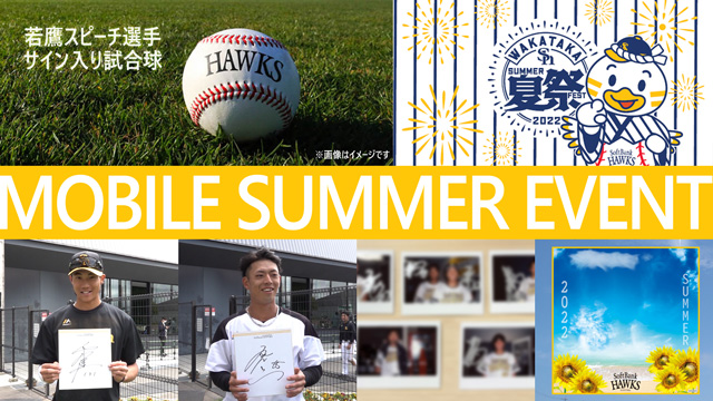 モバイル公式サイトでは、筑後の若鷹夏祭りと連動した直筆サイン入りの試合球が当たるほか、1枚しかないチェキのプレゼントや期間中毎日遊べるコンテンツ、ここだけの動画など 新たなコンテンツとプレゼント企画を準備して皆さんをお待ちしています☆