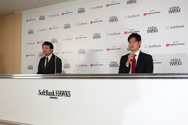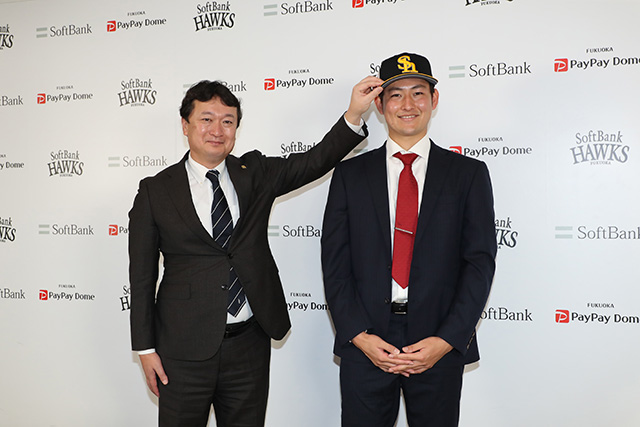 11月23日(水・祝)、育成選手として新入団する渡邊佑樹投手(背番号172)の入団会見がPayPayドームのプレスカンファレンスルームで行われました。