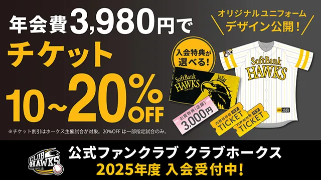 ホークス チケット2025/02/22 (土)2025年度ビジター応援デーチケット発売情報 -