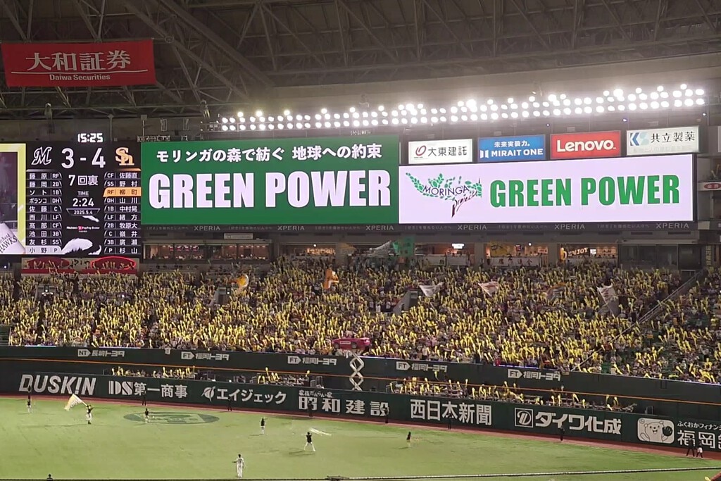 2025年5月4日(日)のホークス公式戦を「モリンガプロジェクト始動メモリアルゲーム」として開催いたしました。「みどりの日」にちなみ、自然の恵みに感謝しながら環境について改めて考えるもらえる一日になりました。