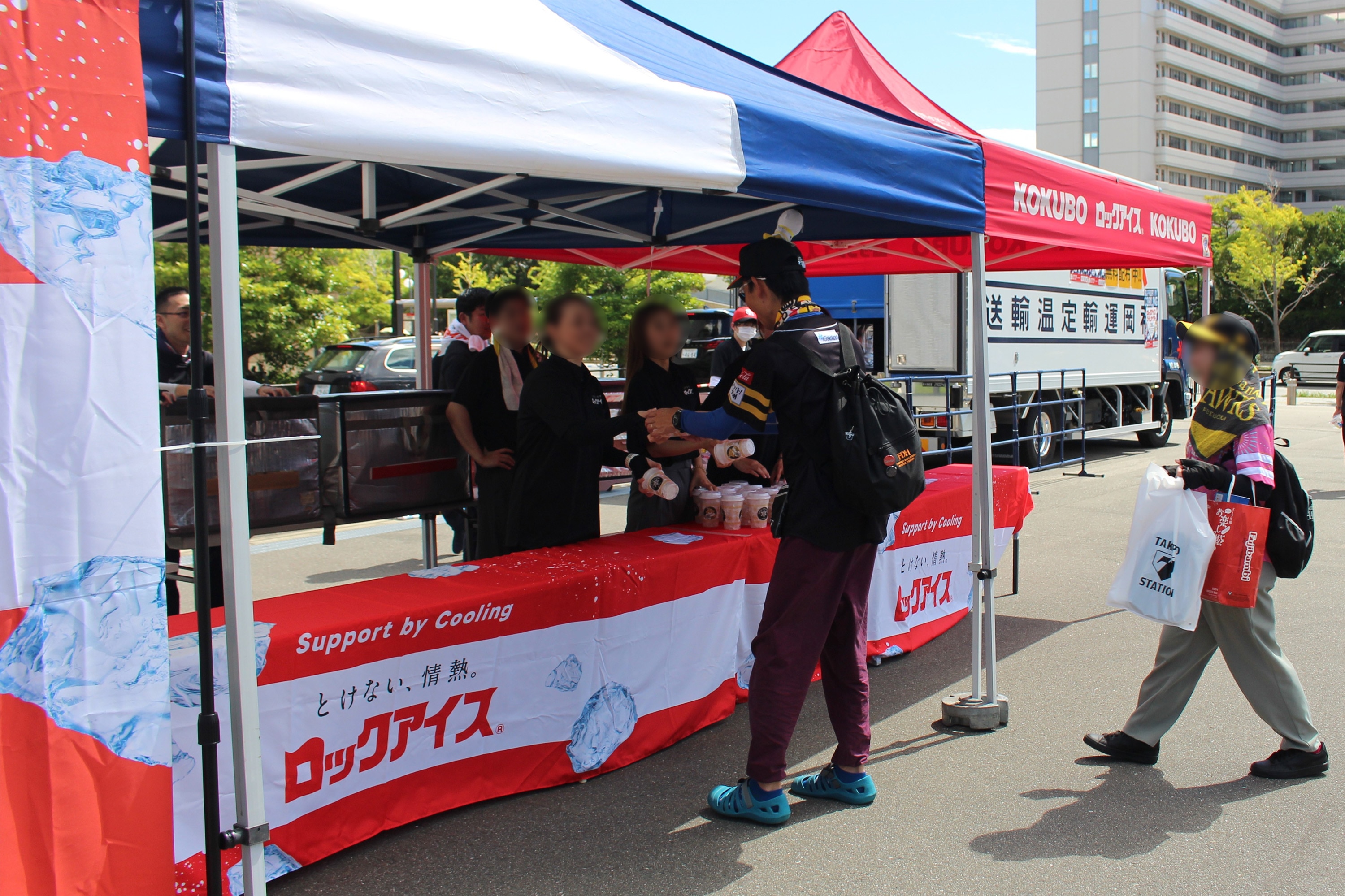 準冠協賛の当日、ロックアイス®のサンプリングを行いました。猛暑の中、直接手渡しできたことで多くの感謝の声をいただきました。