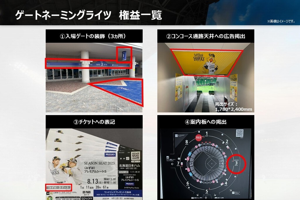 みずほPayPayドームの施設や座席などに貴社に関連する名称を付け、認知度向上を図る「命名権(ネーミングライツ)」について紹介しています。下記に当てはまる方は、こちらより資料をダウンロードください。