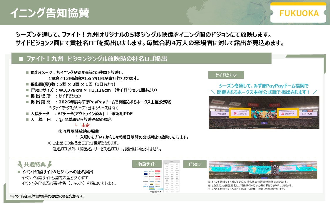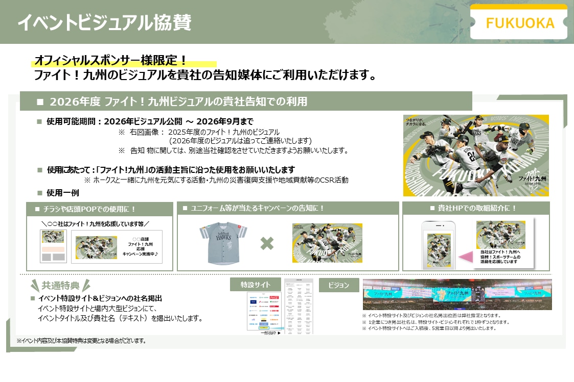 震災復興支援を原点とする「ファイト!九州」プロジェクトへの協賛は、CSR(社会的責任)の実践となるだけでなく、九州全域へのアプローチを通じた認知拡大や、組織のエンゲージメント向上にもつながります。