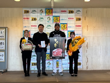 リーグ3連覇、2年連続の日本一達成を応援するべく、2月8日(日)に宮崎キャンプにて贈呈式を実施いたしました。キャンプ期間のチームの活力となるよう、「宮崎牛20kg」と「バレンタインチョコレート」を贈呈しました。