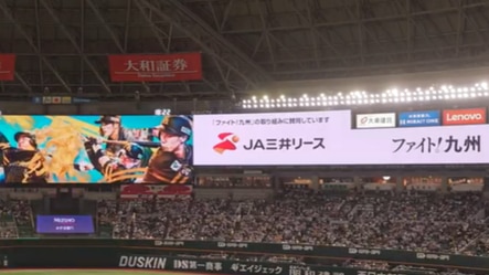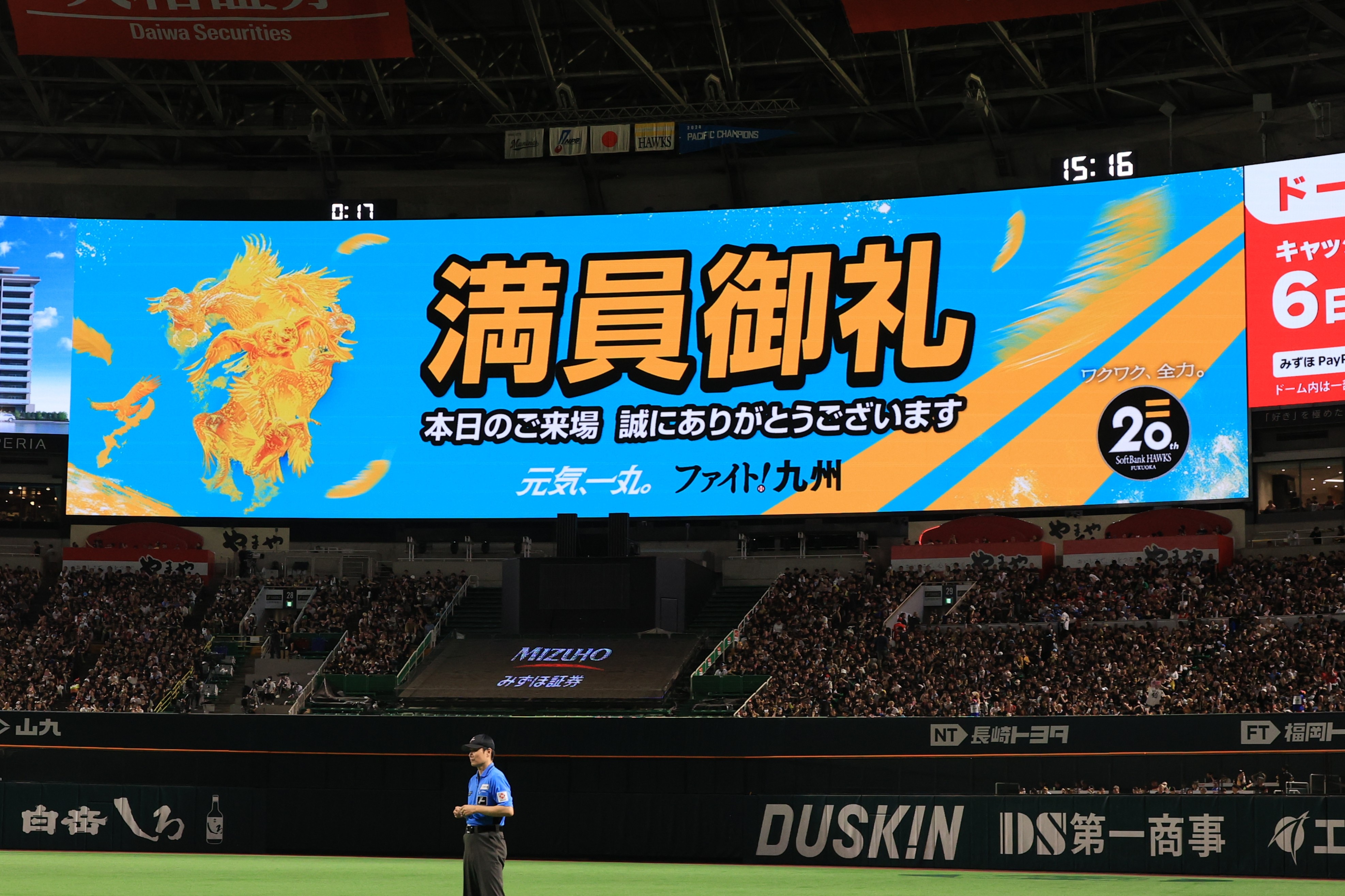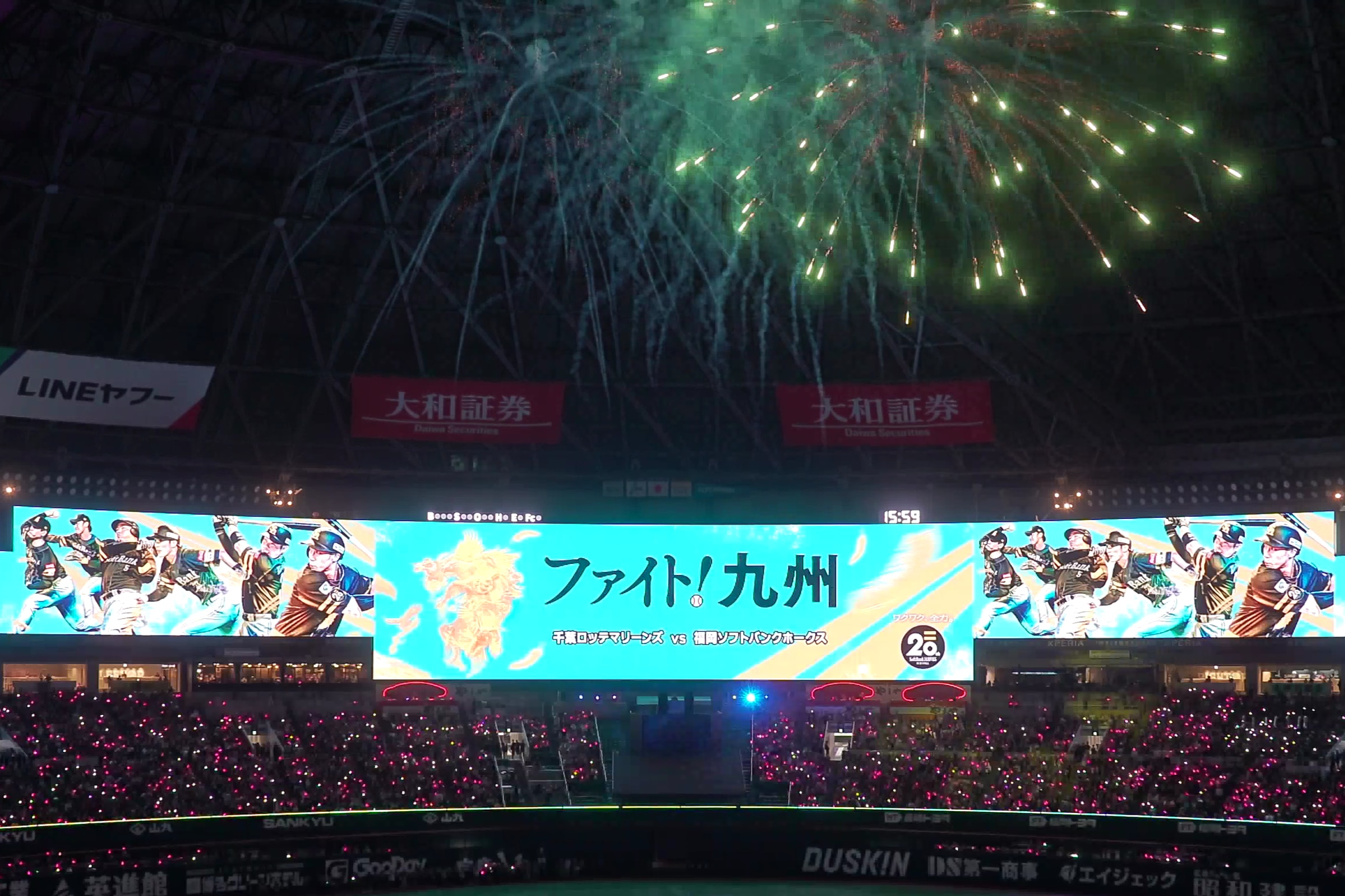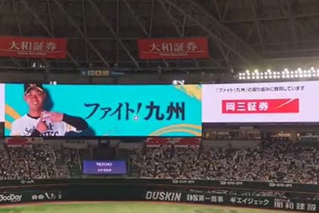 シーズンを通して、ファイト!九州オリジナルジングル映像をイニング間に放映。サイドビジョン2面へ貴社名ロゴを掲出いたします。
