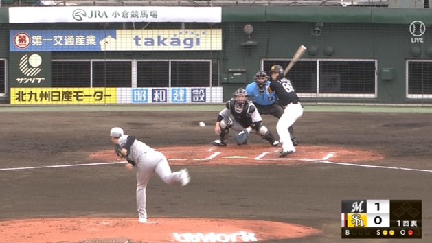 打席に立つ選手と共に、テレビ中継のメイン画角へ掲出。試合の重要な場面で、ブランドを印象付けます。(対象:北九州市民球場)