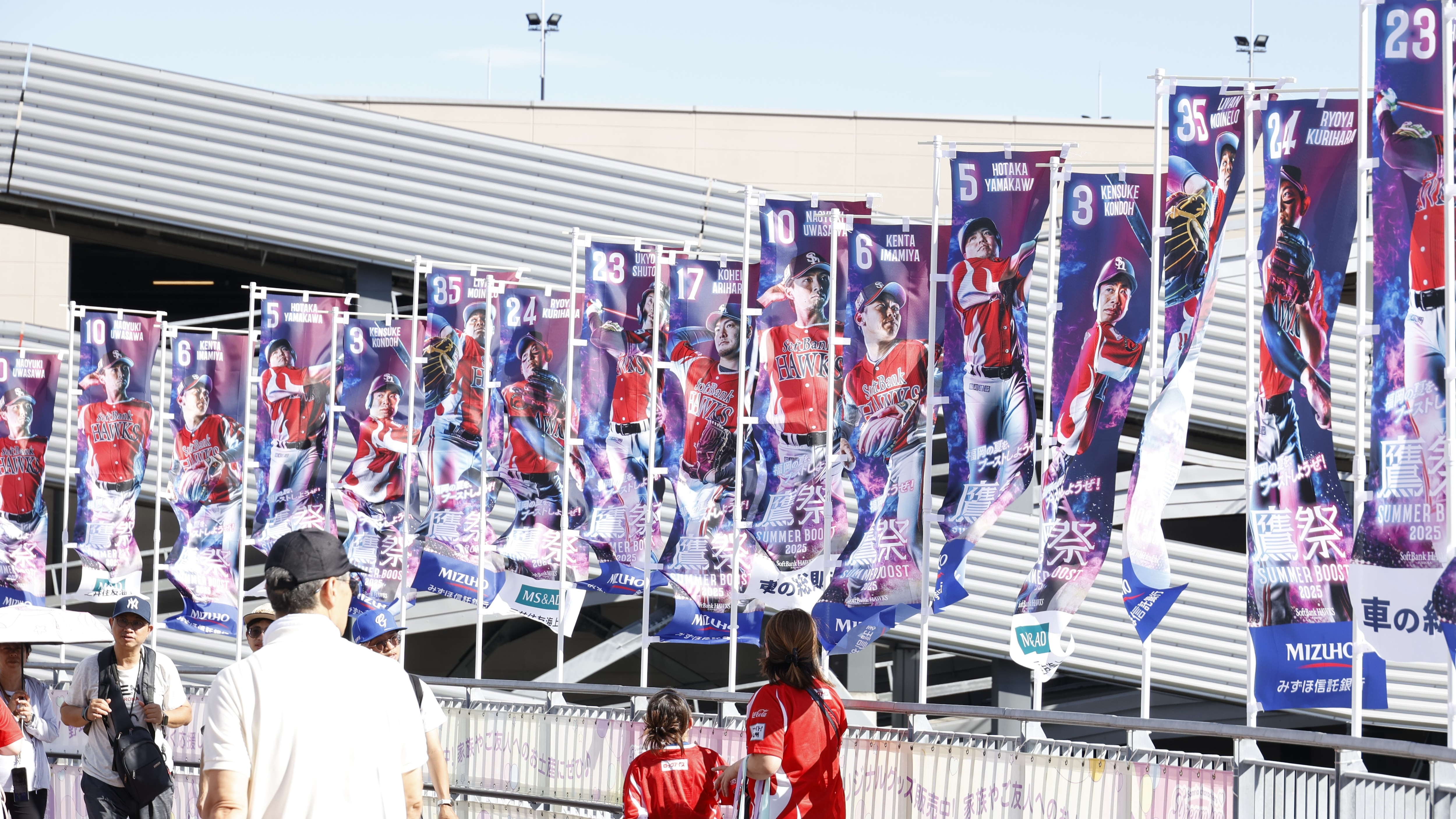 みずほPayPayドームの外周デッキに社名入りのぼりを掲出できます。撮影機会が多く、高い露出・宣伝効果が見込めます。