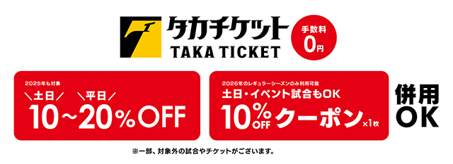 2026年にみずほPayPayドームで開催される公式戦をタカチケットから先行先着順で購入時に利用できる10%OFFクーポンをクラブホークス会員限定で配布します。