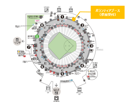 みずほPayPayドーム2ゲート右(1ゲート側)「ボランティアブース」