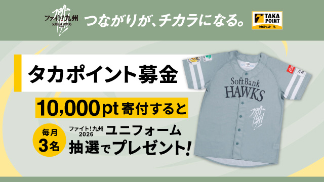 実施期間中に献血にご協力いただいた方に、ホークスと日本赤十字社がコラボした「ファイト!九州」グッズの贈呈や、選手サイン入りグッズが当たる抽選にご応募いただけます。