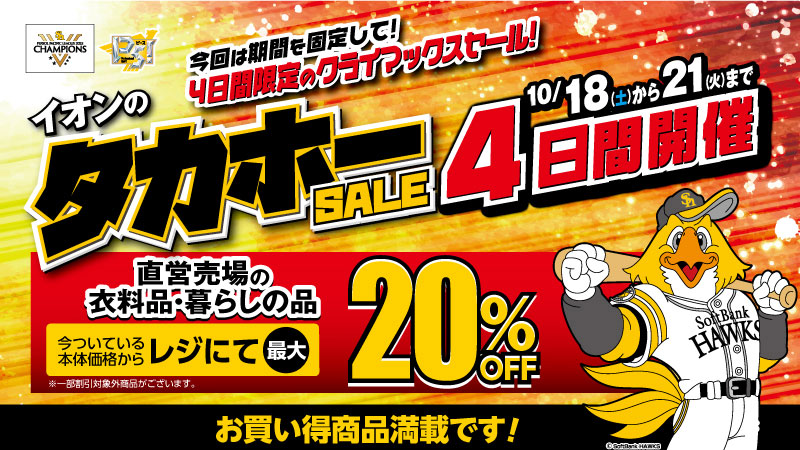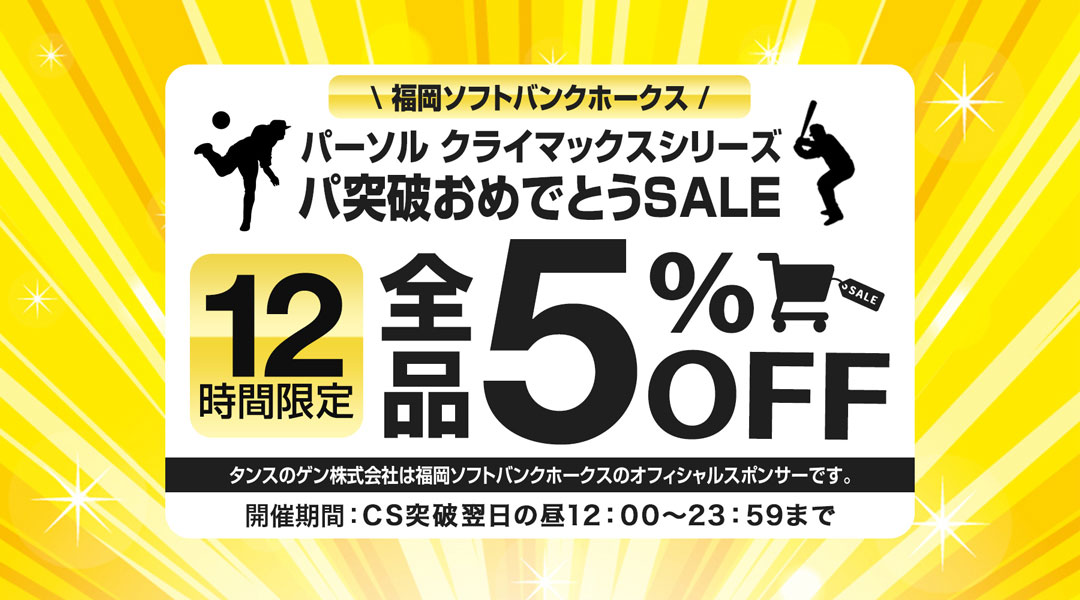 | 内容 | 福岡ソフトバンクホークス「若鷹リング」30%割引&ソフトバンクホークス誕生20周年記念「純金小判」10%割引 |