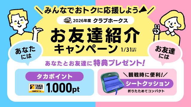 「ホークス筑後ファンクラブ」でもお友達紹介キャンペーンがスタート!