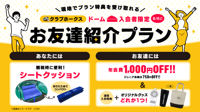 ・クラブホークスは指定の期間で退会のお手続きがない限り、2027年度以降は通常の年会費金額で自動継続となります。詳しくはお申し込み画面の案内をご覧ください。