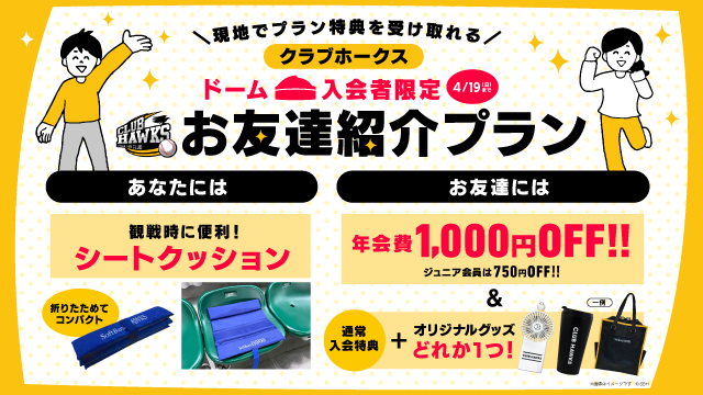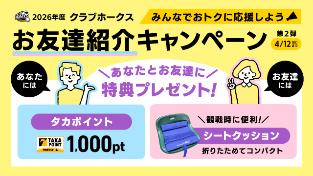 「ホークス筑後ファンクラブ」のお友達紹介キャンペーン第2弾がスタート!