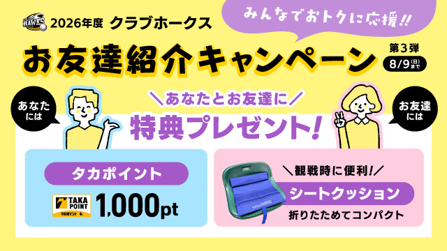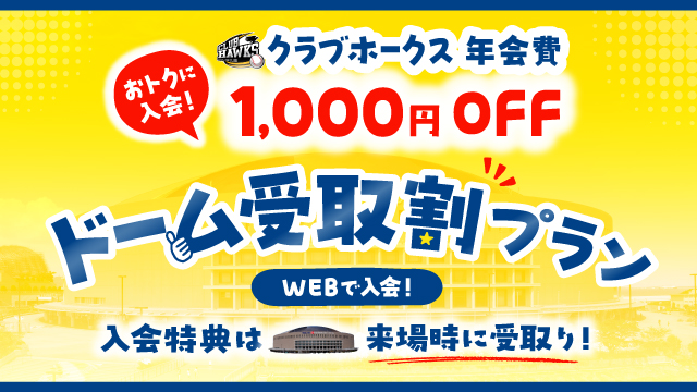 ・クラブホークスは指定の期間で退会のお手続きがない限り、2027年度以降は通常の年会費金額で自動継続となります。詳しくはお申し込み画面の案内をご覧ください。