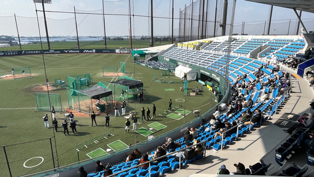 見る機会があまりない、プロ野球選手の練習風景を見学することができます。