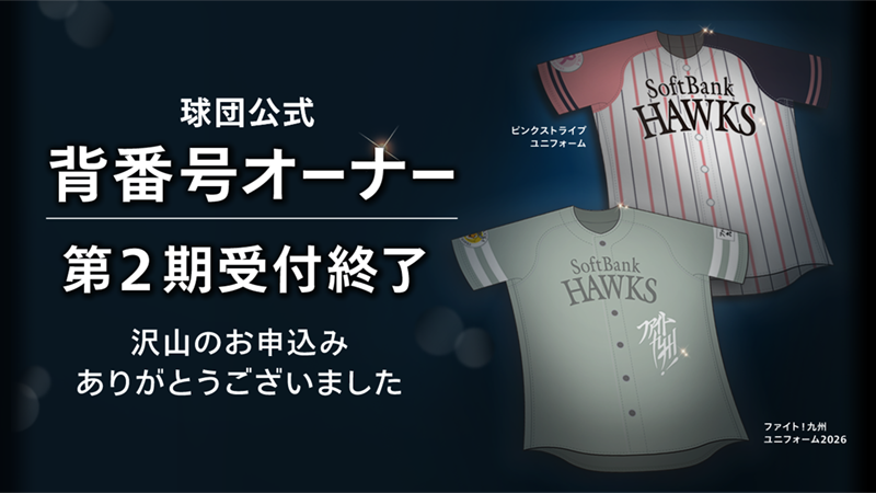 福岡ソフトバンクホークスの公式背番号オーナーとなり、