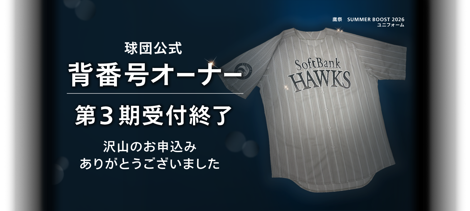 2025年度マイ・ナンバーHAWKSオーナーで2026年度継続入会されなかったお客様の背番号が選択可能となっております。2025年度マイ・ナンバーHAWKSオーナーで2025年度と同じ背番号を選択したいお客様は必ず第2期でお申込みください。第2期でお申込みが無い場合、新規でお申込みいただいたお客様に背番号を割り当てます。