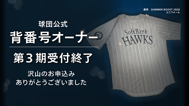 福岡ソフトバンクホークスの公式背番号オーナーとなり、