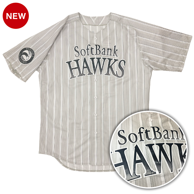 HAWKS)や袖の二重線・首周りのラインおよび背ネーム(登録名・背番号)には、『昇華転写プリント方式』を採用。このプリント方式は、一般の熱圧着のような、はがれやひび割れが発生しないのが特徴です。