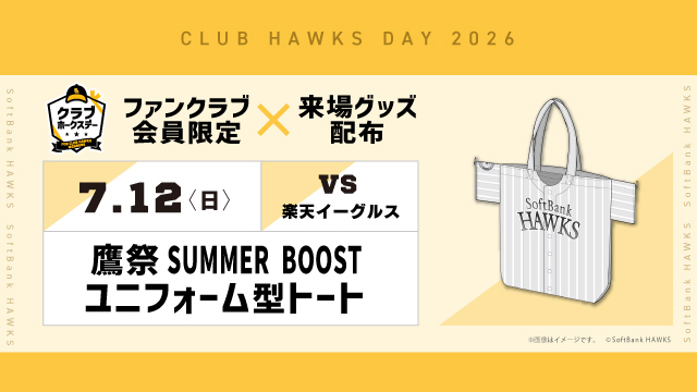 7月12日(日)「鷹祭 SUMMER BOOSTユニフォーム型トート」配布
